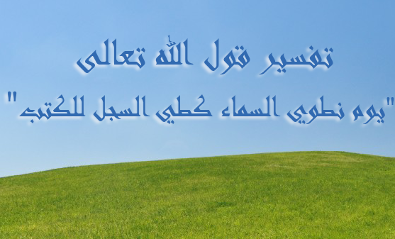 { يَوْمَ نَطْوِي السَّمَاءَ } المراد بالطي هنا هو الطي المعروف وأن الله سبحانه يطوي السماء بقدرته وقيل إن طي السماء ذهابها عن الحس { كَطَيِّ السِّجِلِّ لِلْكُتُبِ} والسجل صحيفة فيها الكتب عن ابن عباس ومجاهد وقتادة والكلبي وعلى هذا فمعناه نطويها كما تطوى الصحيفة المجعولة للكتاب ويجوز أن يكون المراد بالكتاب المكتوب وقيل أن السجل ملك يكتب أعمال العباد عن أبي عمرو والسدي وقيل هو ملك يطوي كتب بني آدم إذا رفعت إليه عن عطا وقيل هو اسم كاتب كان للنبي (صلى الله عليه وآله وسلّم) عن ابن عباس في رواية.