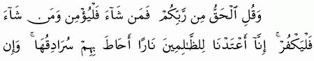 قوله تعالى:{ إِنَّا أَعْتَدْنَا لِلظَّالِمِينَ نَارًا} إلى آخر الآية قال في المجمع،: السرادق الفسطاط المحيط بما فيه، ويقال: السرادق ثوب يدار حول الفسطاط، وقال: المهل خثارة الزيت، وقيل: هو النحاس الذائب، وقال: المرتفق المتكأ من المرفق يقال: ارتفق إذا اتكأ على مرفقه انتهى والشيء النضج يقال: شوى يشوي شيا إذا نضج.