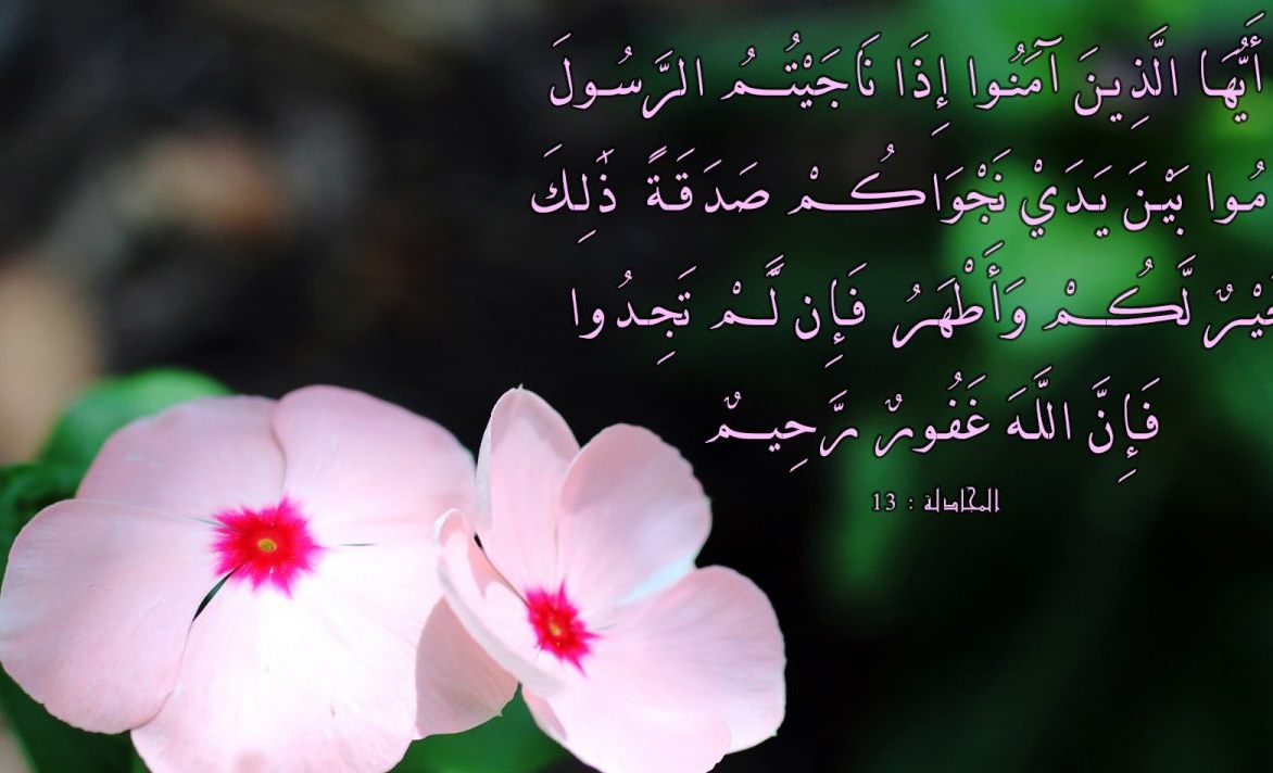{ يَاأَيُّهَا الَّذِينَ آمَنُوا إِذَا نَاجَيْتُمُ الرَّسُولَ فَقَدِّمُوا بَيْنَ يَدَيْ نَجْوَاكُمْ صَدَقَةً } قال الطبري : (نهوا عن مناجات النبيّ (صلى الله عليه وآله وسلم) حتى يتصدّقوا، فلم يناجه أحد إلاّ عليّ بن أبي طالب) .