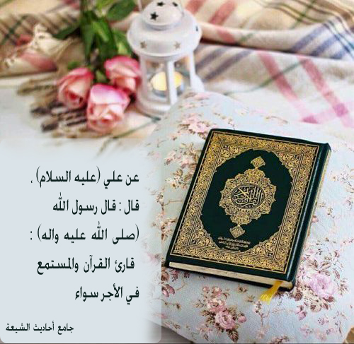 عن علي (عليه السلام) ، قال : قال رسول الله (صلى الله عليه واله) : قارئ القرآن والمستمع في الأجر سواء .(1)