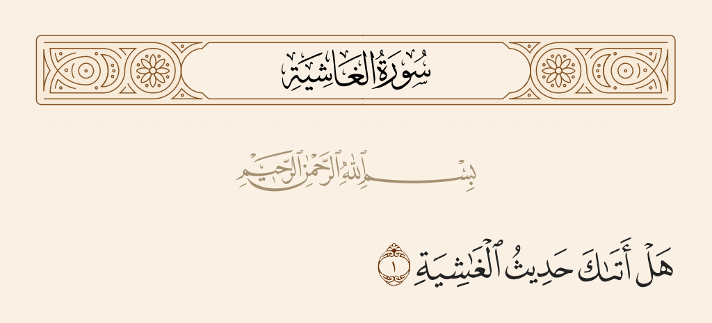 «الغاشية»: من (الغشاوة)، وهي التغطية، وسمّيت القيامة بذلك لأنّ حوادثها الرهيبة ستغطي فجاءة كلّ شيء.