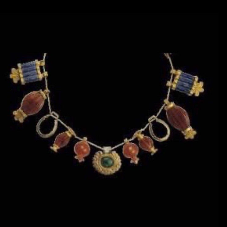 قلادة آشورية من الذهب ، واللازورد ، والعقيق ، والكوارتز ‎من الفترة حوالي 1300 ق م