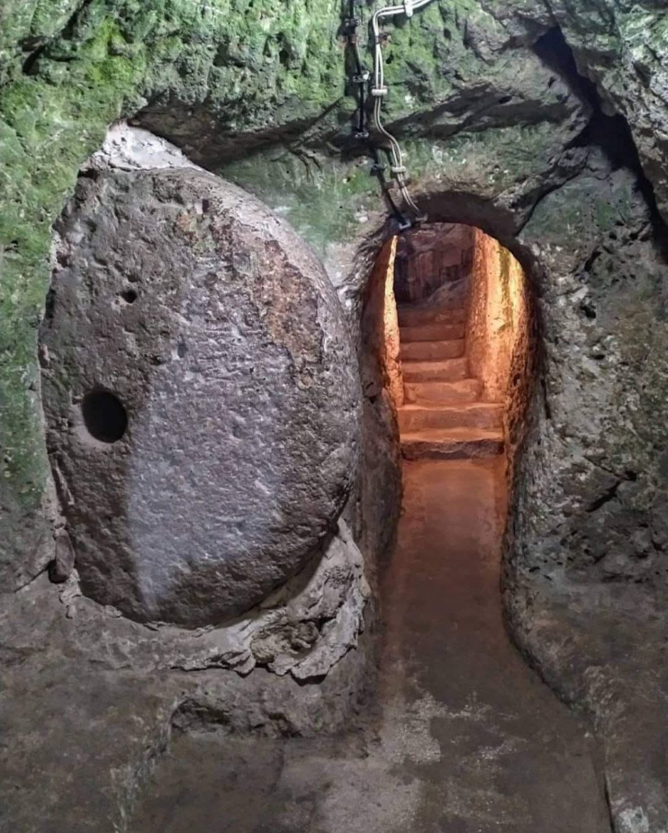 مدخل إلى مدينة ديرنكويو(تركيا )الموجودة تحت الأرض. بنيت منذ قرون عديدة، وتتكون من 11 طابقا أسفل الأرض على عمق يصل إلى 85 متراً، وهي كبيرة جدا لدرجة أنها تتسع لـ50 ألف شخص.