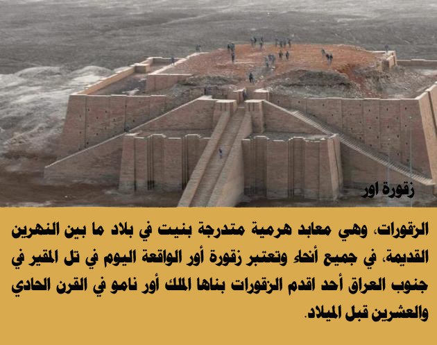 الزقورات، وهي معابد هرمية متدرجة بنيت في بلاد ما بين النهرين القديمة، في جميع أنحاء وتعتبر زقورة أور الواقعة اليوم في تل المقير في جنوب العراق أحد اقدم الزقورات بناها الملك أور نامو في القرن الحادي والعشرين قبل الميلاد.