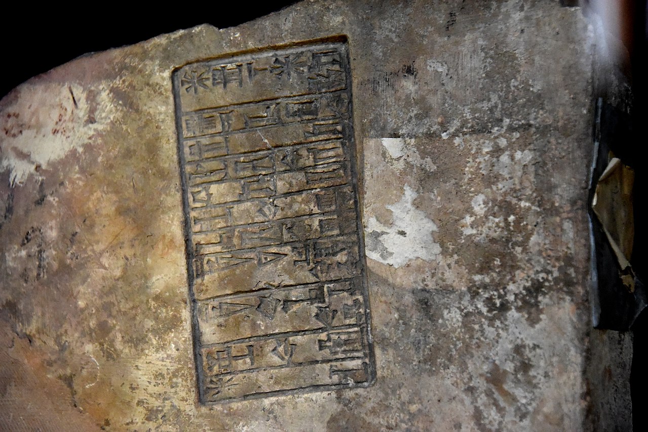 في الصورة المرفقة للمنشور تبين حجر من الطين بالخط المسماري يعود الى عهد مدينة ايسن مختوم بختم ملكها اشمي داجان معروض حاليا في المتحف البريطاني في لندن.