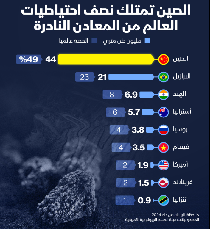الصين تمتلك نصف احتياطيات العالم من المعادن النادرة ..