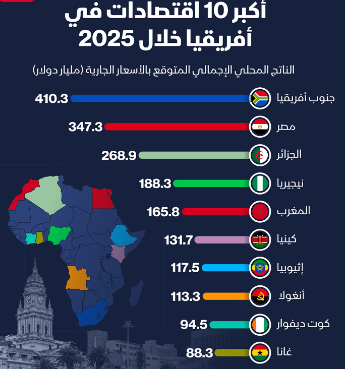 #مصر ثاني أكبر اقتصاد في أفريقيا خلال 2025 بناتج محلي إجمالي متوقع 347.3 مليار دولار.