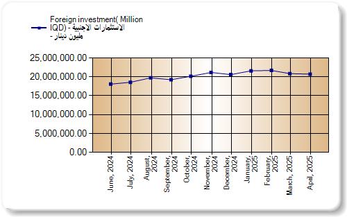 انخفضت الاستثمارات الأجنبية في العراق من 21.580 ترليون دينار في شهر كانون الثاني 2025 الى 20.708 ترليون دينارفي شهر نيسان 2025 أي ما يعادل نحو 16 مليار دولار وهذه الارقام التي نشرها البنك المركزي العراقي ..