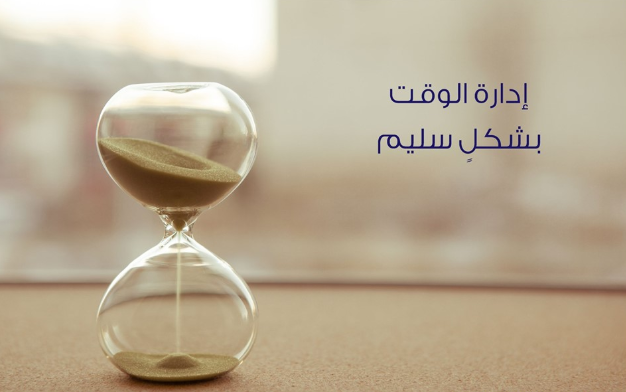 كيفيـة إدارة الوقت بشكل سليـم : 1ـ تنظيم الأعمال والأنشطة الواجب على الفرد القيام بها أثناء اليوم، وترتيبها حسب الأولويّات. 2- قم بكتابة جدول يوم قصير واضافة توقيت تقديري لكل مهمة، لترى كم من الوقت تستغرق جميع المهام . 3- البحث عن العوامل التي تؤدي إلى ضياع الوقت، ومحاولة البُعد عنها وإزالتها. 4- احرص على تنظيم كافّة أعمالك اليوميّة حتى لا يضيع وقتك في محاولة تحديد ما عليك فعله. 5- قم بتحدي نفسك ووضع اهداف ومدة لها.