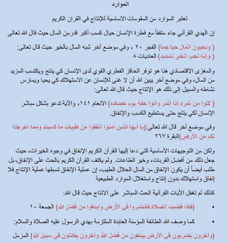 ( مقتبسات عن علم الاقتصاد في القرآن الكريم )