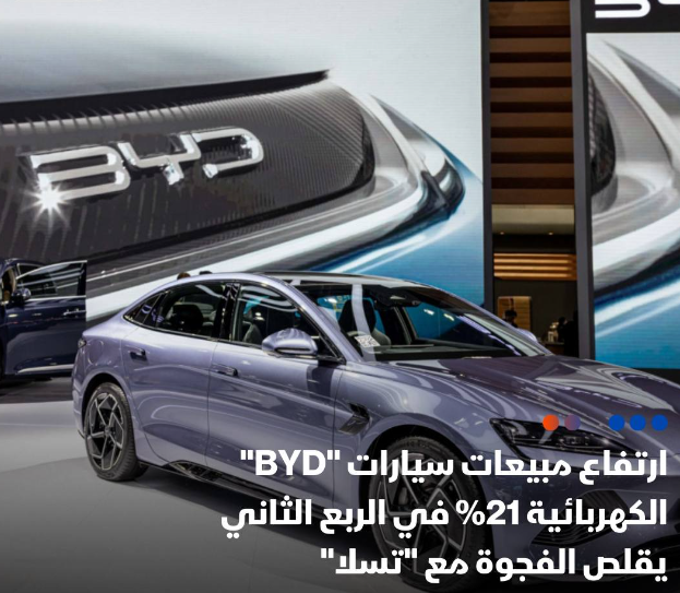 مبيعات "BYD" الصينية من #السيارات_الكهربائية بالربع الثاني من العام ترتفع بنحو 21%، مما ساهم في تقليص الفجوة مع #تسلا بعد أن أعادت الشركة الصينية لقب أفضل شركة للسيارات الكهربائية في العالم لمنافستها الأميركية بالربع الأول .