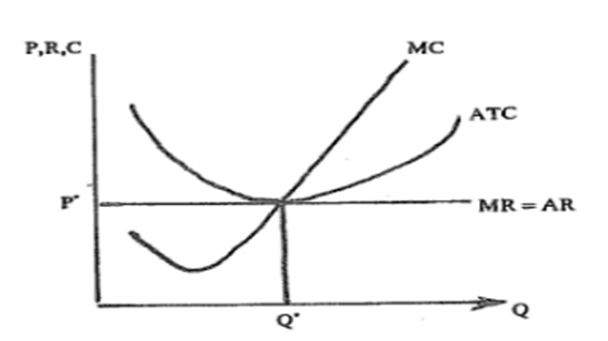 وهذا من شأنه ان يجعل منحنى التكلفة الحدية يتزايد بوتائر معتدلة، مما يؤدي الى تحقيق كميات معقولة من الانتاج عند الحجم التوازني. وهنا فان منحنى متوسط التكلفة الكلية (ATC) سوف يمر من خلال نقطة التقاطع MC مع MR ، مما يعني ان هذا المشروع قادر على تغطية التكاليف الكلية باكملها،فضلاً عن التكاليف المتغيرة. ويحقق الارباح الاعتيادية التي تتمثل بالفرق بين مستويات الكلفة الحدية و مستوى الايراد…