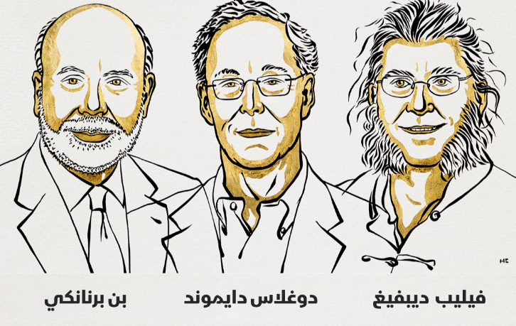 منحت الأكاديمية الملكية السويدية للعلوم في ستوكهولم ثلاثة اقتصاديين جائزة نوبل في الاقتصاد،هم: بن برناركي،ودوغلاس دايموند،وفيليب ديبفيغ،عن أبحاثهم عن البنوك ودورها في تجنب الأزمات المالية.قالت اللجنة:"الفائزون هذا العام في العلوم الاقتصادية، بن برنانكي ودوغلاس دايموند وفيليب ديبفيغ، ساهموا في تحسين فهمنا لدور البنوك في الاقتصاد،لا سيما في أثناء الأزمات المالية.ومن أهم نتائج بحثهم سبب أهمية تجنب انهيار البنوك".وتبلغ قيمتها 10 ملايين كرون سويدي (نحو 900 ألف دولار)،ما يوازي فئات…