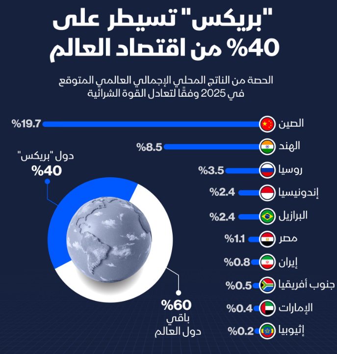 اتفق قادة بريكس، الذين يمثلون 49% من سكان العالم، على بيان مشترك تبنّى مواقف تتعارض مع إدارة ترامب في قضايا التجارة والحوكمة العالمية.