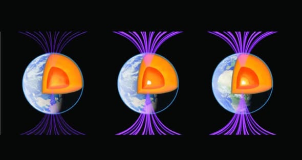 تؤثر الحمم البركانية بشكل مباشر على المجال المغناطيسي المحلي للأرض بسبب احتوائها على معادن مغناطيسية مثل الحديد والتيتانيوم. فعند خروج الحمم من باطن الأرض تكون المعادن فيها منصهرة وغير ممغنطة، لكن عندما تبرد وتتصلب تبدأ الذرات المغناطيسية بالاصطفاف وفق اتجاه المجال المغناطيسي الأرضي في تلك اللحظة. وهكذا تحفظ الصخور البركانية سجلًا مغناطيسيًا دقيقًا يمكن للعلماء من خلاله تتبع تغيرات القطبين المغناطيسيين عبر الزمن.