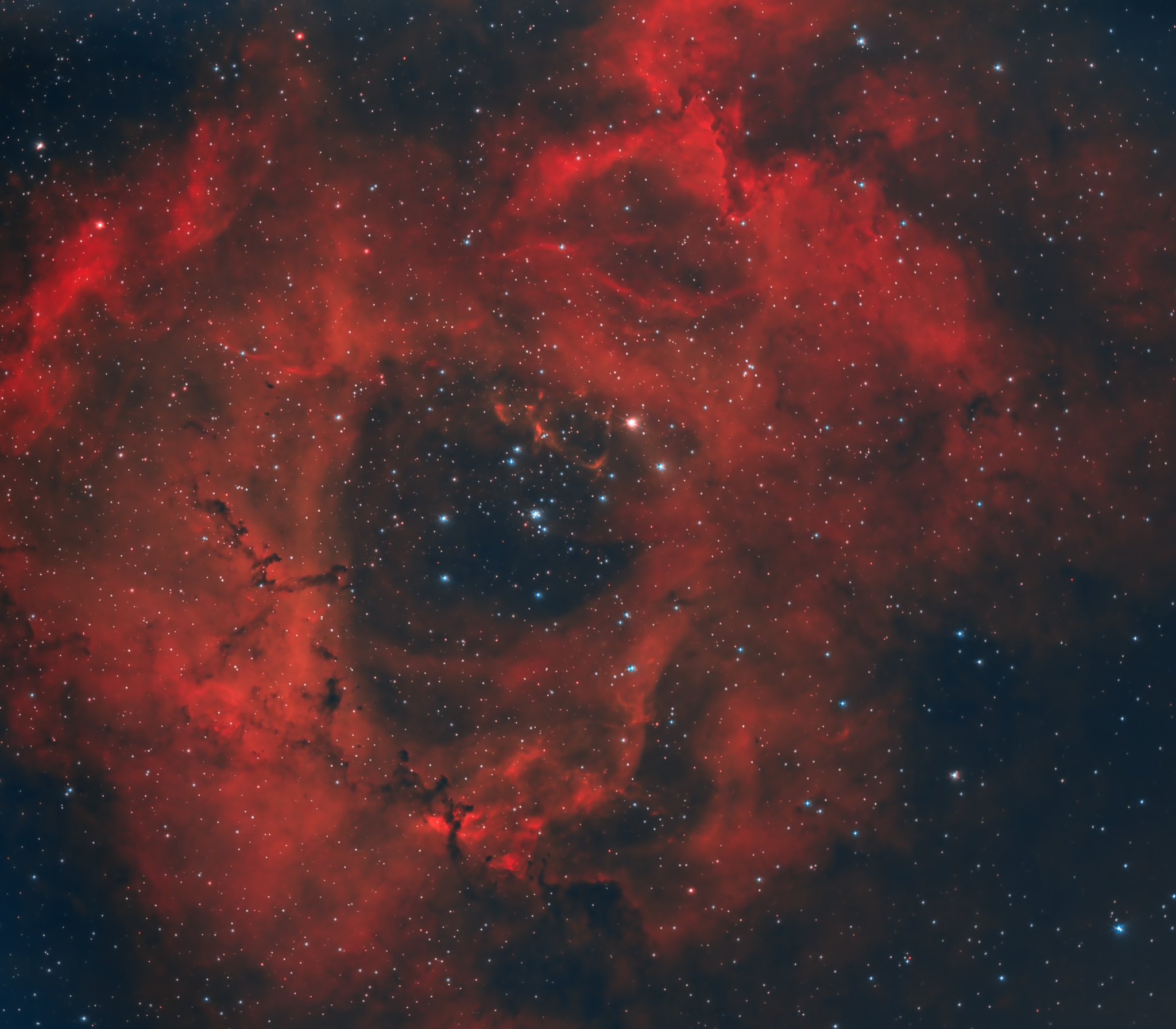 سديم الوردة Rosette Nebula عبارة عن سحب فضائية عملاقة تتكون من الغبار والاكسجين وغاز الهيدروجين الثنائي يبعد عنّا 5200 سنة ضوئية.