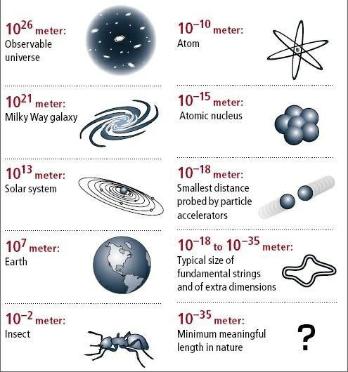 فمعادلات النسبية العامة تنطبق فقط في مجال 10¹³m فما فوق، أما معادلات ميكانيكا الكم فتنطبق على المستوى الذري ودون الذري في حدود -18^10.