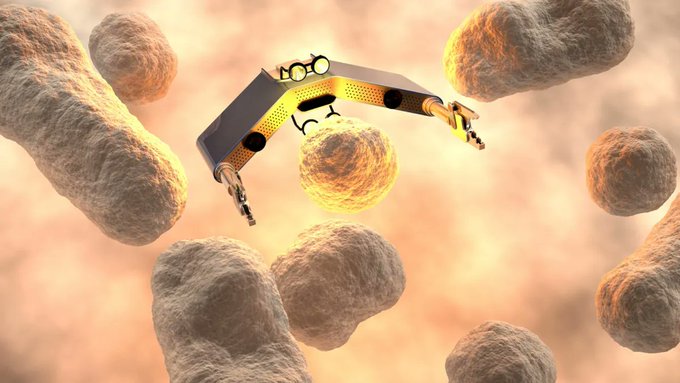 في تطور طبي كبير ابتكر علماء روبوتاً هجيناً صغيراً يبلغ عرضه 10 ميكرون فقط أي ما يعادل حجم خلية بشرية يمكن التحكم فيه باستخدام آليتين كهربائية ومغناطيسية. ويمكن أن يؤدي بعض المهام مثل نقل دواء أو جين إلى الخلية والتمييز بين أنواع الخلايا وتحديد ما إذا كانت سليمة أم تالفة. كما أظهر الفريق قدرات الروبوت من خلال التقاط خلايا سرطانية وبكتيريا بنجاح وكما يمكنه نقل الخلية المرغوبة لمزيد من الدراسة ، مثل التحليل الجيني. كما يمكن أن يكون مفيداً بشكل كبير في إنشاء علاج موجه لأمراض مختلفة، مثل السرطان.