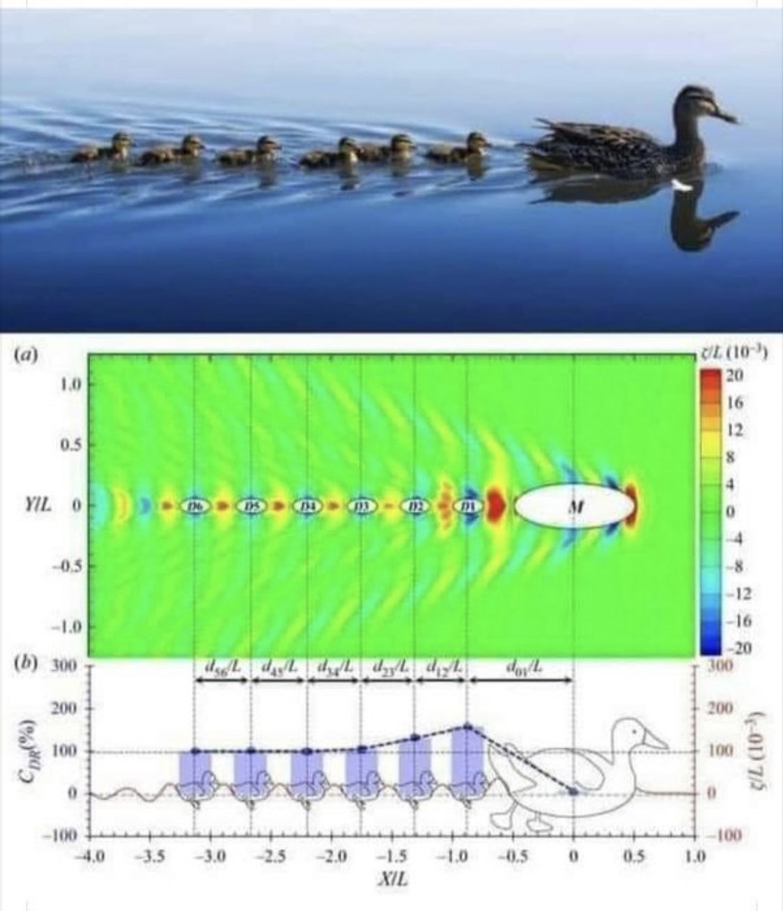 الترتيب الذي تسبح فيه البطه و افراخها ليس عبثياً، حسب ديناميكا الموائع