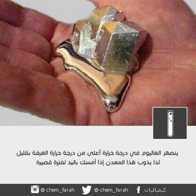 درجة انصهار هذا المعدن تقارب درجة حرارة جسم الإنسان 37 م لهذا فهو ينصهر باليد