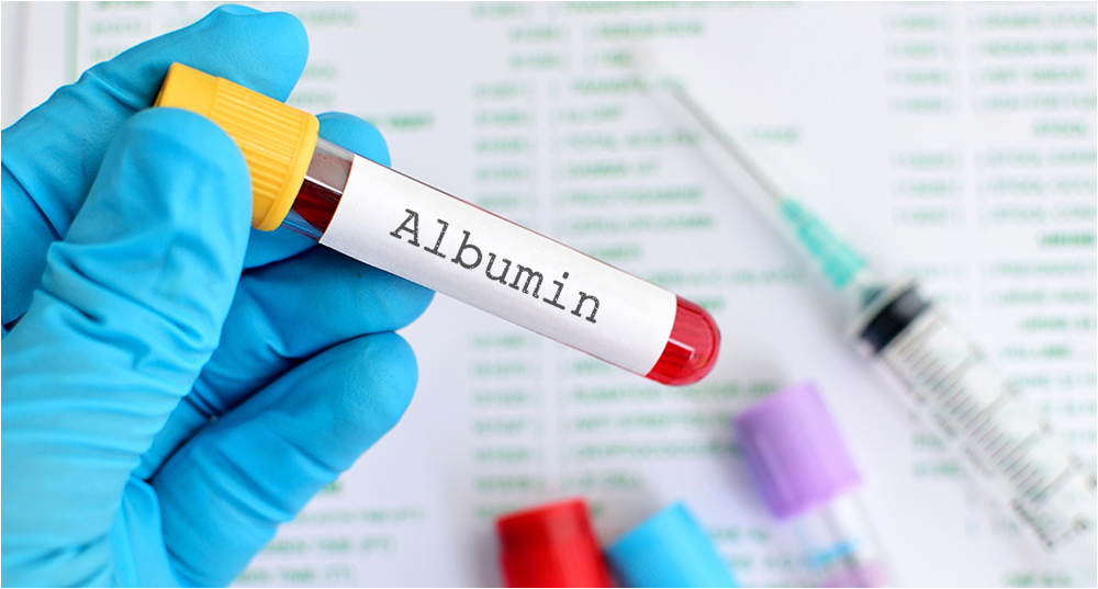 الألبومين هو بروتين في الدم يُنتج في الكبد ويمثل أكثر من نصف بروتينات البلازما، يساعد على حفظ السوائل داخل الأوعية الدموية ونقل الدهون والهرمونات وبعض الأدوية وحماية الجسم من الأكسدة وانخفاضه قد يدل على مشاكل في الكبد أو الكلى أو سوء التغذية.