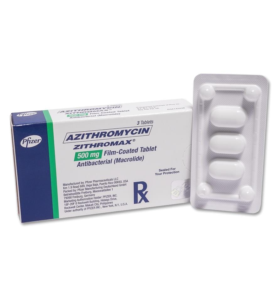 الأزيثرومايسين (Azithromycin) مضاد حيوي من فئة الماكروليدات يثبط تصنيع البروتينات البكتيرية ويستخدم لعلاج التهابات الجهاز التنفسي، الأذن، الجلد، والأمراض المنقولة جنسياً، ويُعطى عادةً مرة واحدة يومياً وتحت اشراف الطبيب ، وتشمل آثاره الجانبية الغثيان والإسهال واحتمال اضطراب نظم القلب.
