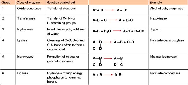 صنفت او سميت الانزيمات التي يربو عددها عن الفي انزيم بحسب تسمية نظامية خاصة ، غالبا ما تنتهي بالمقطع ase- ايز او ايس ، وقد صنفت بحسب التصنيف العالمي الى ستة اصناف او مجموعات ، وذلك بحسب نوع التفاعل الذي تحفز او الذي تعمل كعامل مساعد