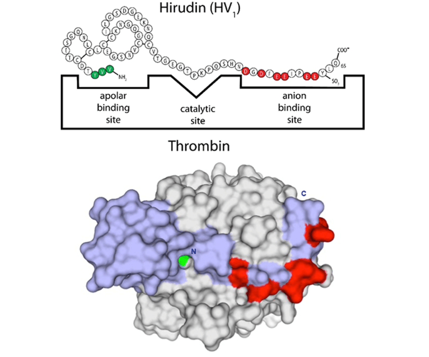 إنتاج مثبط تخثر الدم Hirudin بالتقنية الحيوية :من مثبطات تخثر الدم القوية جدا فله صفات Antithrombic , Anticoagulant ينتج في العلق الطبي Hirudo medicinalis واستعمل العلق منذ بداية الثامن عشر للأغراض الطبية ولكن تذبذب كمياته لا تجعله منتجا طبيا على النطاق التسويقي.ادخل الجين المسئول عنه في البكتريا لإنتاج rHirudins ليستعمل كدواء ضد التخثر ومعالجة أمراض التجلط في الاوردة والشرايين بدلا من العلاج التقليدي Heparin. وقد أجيز استعمال مانع التخثر المنتج بالهندسة الوراثية مع مركب اخر مشابه له .