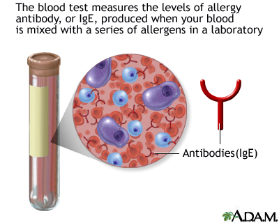 عند الاعتقاد بالإصابة بالحساسية، فالجهة الأولى التي يجب الاتصال بها هي الطبيب. وإذا اعتقد الطبيب بعد مناقشة الأعراض بأن المريض قد يكون مصاباً فعلاً بالحساسية، فقد يعرض عليه القيام باختبار الدم (يعرف رسمياً باختبار RAST) (اختبار الممتز الأرجي الشعاعي) لتحديد سبب الحساسية.