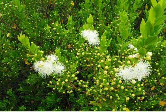 ويسمى محليا الآس، وهو شجيرة دائمة الخضرة عطرية الرائحة ارتفاعها يتراوح بين 1 - 2 م وقد تصل الى 5 م الأوراق متقابلة بسيطة صغيرة ملساء رمحيه، الازهار بيضاء او مشوبة باللون الأحمر قليلا تحمل مفردة في اباط الأوراق على حوامل زهرية نحيفة الثمار بيضوية حمراء ارجوانية سوداء اللون البذور كلوية الشكل شاحبة اللون.