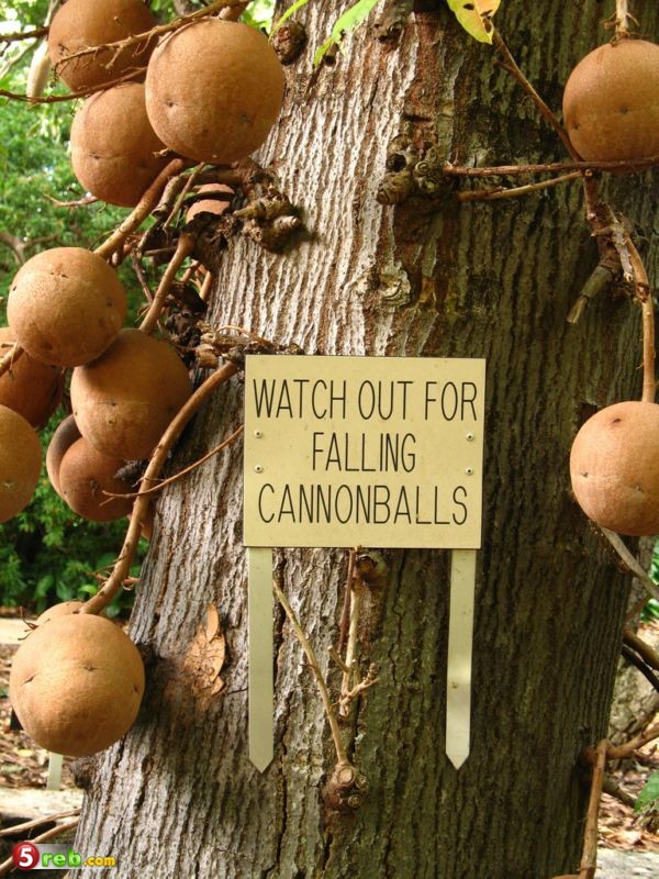 شجرة المدفع Cannoballs تنمو فى قارة أمريكا الجنوبية فى منطقة البحر الكاريبى وتوجد بكثرة بالقرب من المعابد الهندوسية، سميت بشجرة المدفع لأن ثمرتها إذا سقطت من علو تصدر دويا كدوي المدافع والمتفجرات، وغالبا ما يكتب لوحات تحذيرية إذ قد تسبب الموت إذا سقطت إحدى الثمار الناضجة على أحد المارة، والغريب في الأمر أن ثمارها تنمو من جذوعها مباشرة في وضع مستقيم من جذع شجرة المدفع.
