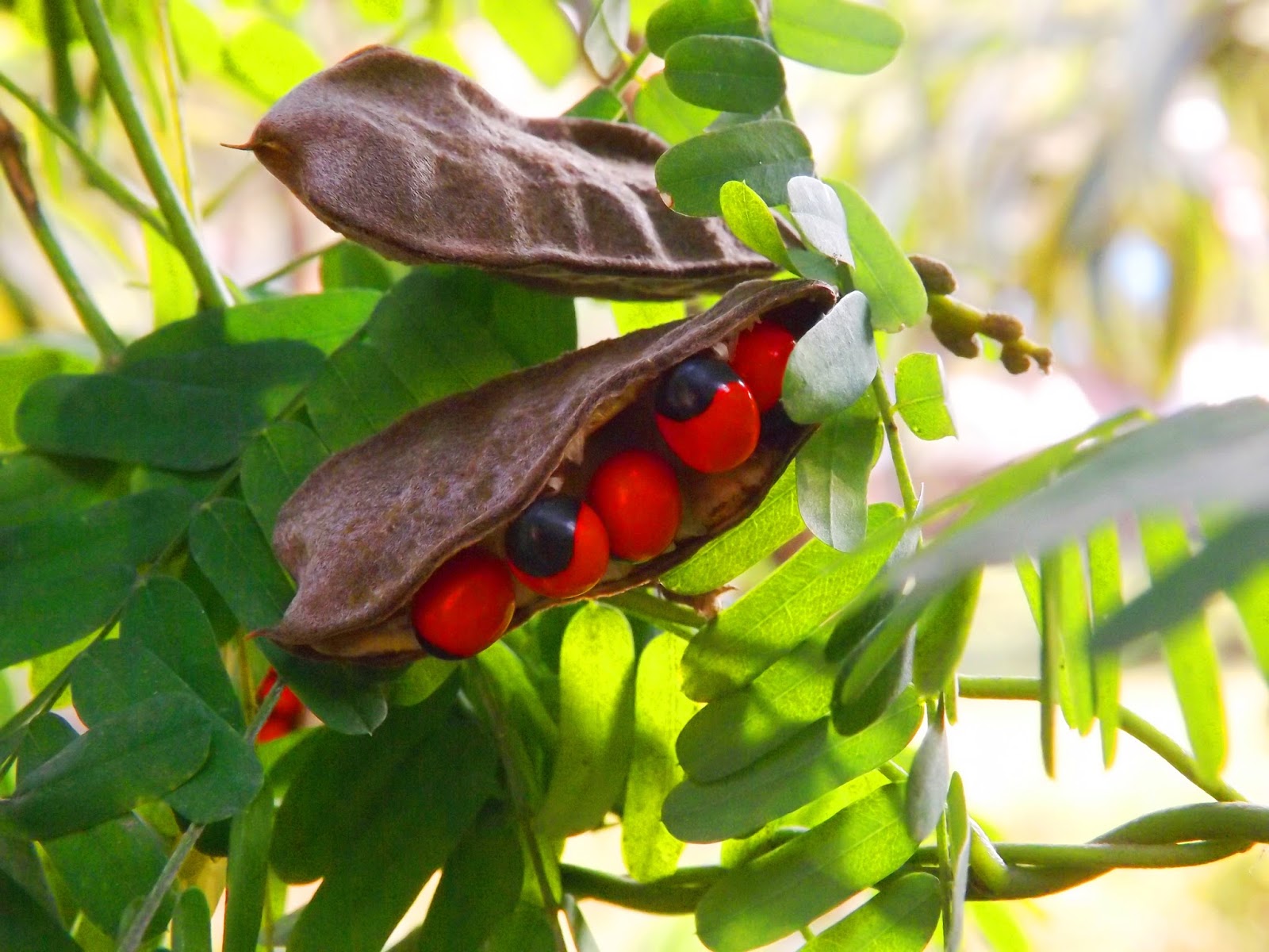 الاسم العلمي (Abrus precatorius) ويسمى ايضا عين الجن وعين الديك، بسبب شكل ولون البذور حيث تكون ذات لون أحمر فاقع لماع به بقعة سوداء، وهي سامة جدا تسبب الموت إن مضغت وبلعت.