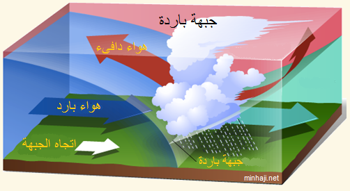 الجبهات الهوائية: هي الحد الناتج من التقاء كتل هوائية مختلفة في درجة الحرارة , تتكون الجبهة الهوائية نتيجة التقاء كتلتين هوائيتين مختلفتان في الصفات عن بعضهما البعض من حيث الحرارة و الرطوبة، عندما تصطدم كتل من الهواء مختلفة في درجات حرارتها لتشكل حداً فاصلاً بينها.