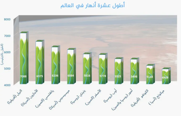 أطول انهار العالم : تم إجراء العديد من العمليات لقياس أكثرها طولا، من ذلك القياسات التي قام بها باحثون صينيون عام 2009 لأطول 10 أنهار في العالم ونشرت نتائجها في دورية "إنترناشوينال جورنال أوف ديجتال إيرث" (International Journal of Digital Earth).