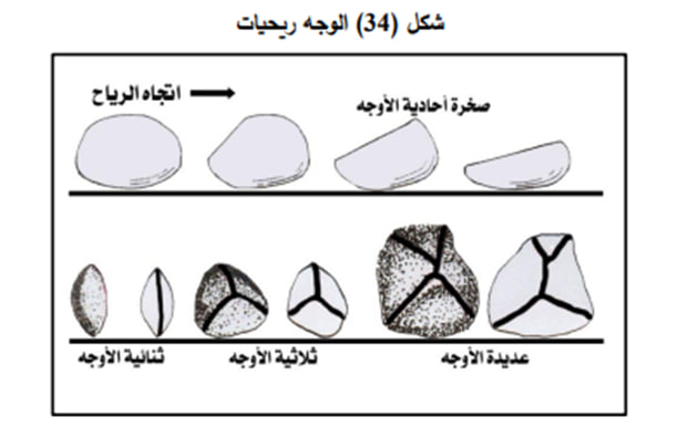 الوجه ريحيات (الحصى متعدد الأوجه): حصى له أشكال متنوعة وسطوح مصقولة بفعل ظاهرة البري الريحي ينتشر في أغلب الصحاري وتتباين أوجهه تبعاً لتباين تعرضه للرياح، فإذا كانت الرياح سائدة في اتجاه واحد يتكون للحصاة وجه عريض صقيل منحدر في الاتجاه الذي تهب منه الرياح. وإذا غيرت الرياح اتجاهها وتحركت الحصاة يتعرض جانبها الآخر للبري وهكذا تتعدد الأوجه تبعاً لاستمرارية تعرضه لبري الرياح .