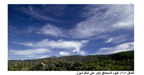 غيوم السمحاق Cirrus : غيوم رقيقة لا تحجب ضوء الشمس وهي بيضاء كلياً، وتكون على ارتفاعات عالية لا تغطي السماء بكاملها ولكنها قد تمتد إلى مسافة كيلومترات. كيفية تكون هذه الغيوم غير مفهوم تماماً، وأفضل تفسير لتكونها يشير إلى أنها تتكون في هواء جاف بطيء التصاعد. ولان الهواء جاف فانه يحتاج إلى الارتفاع كثيراً ليصل إلى مستوى التكاثف. عندما يصل الهواء إلى حالة الإشباع، تبدأ البلورات الثلجية بالتكون. واستمرار عملية التكون تحتم كبر حجم هذه البلورات لأنها ستصبح جاذبة لذرات بخار الماء.
