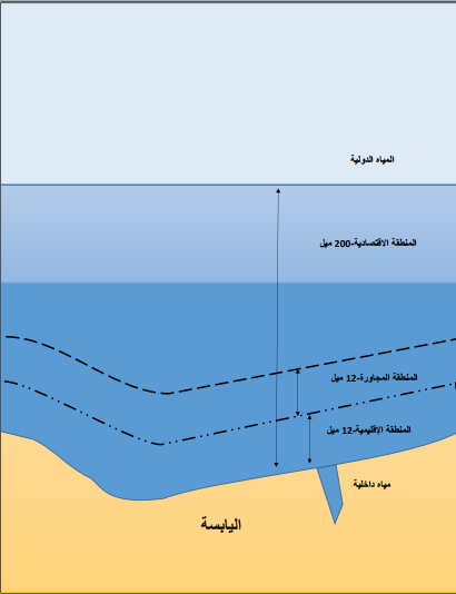 المياه الإقليمية: هي الحزام البحري المحاذي مباشرة لأراضيها ويحق لها ان تمارس عليه تقريباً كل سلطات السيادة التي تملكها بالنسبة لأراضيها, وتعتبر المياه الإقليمية مياه بحرية من الدرجة الثانية التي لها حق السيادة عليها، وفقاً لما أقرته معاهدة جنيف وكذلك الأحكام الأخرى المتعلقة بهذا القانون.