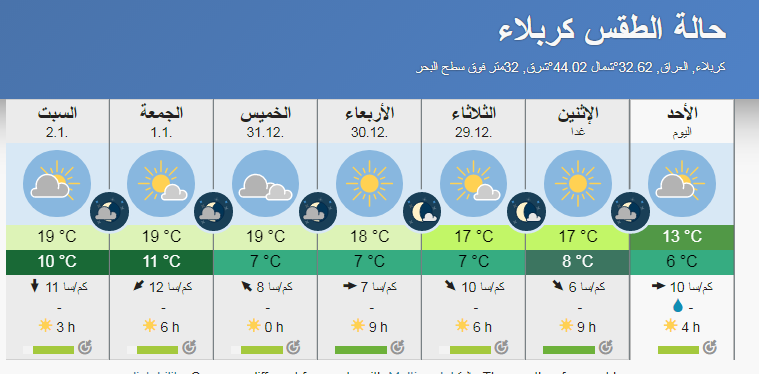توقعات الطقس لمدينة كربلاء المقدسة , والعلم عند الله