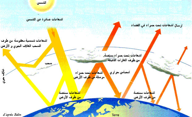 ظاهرة الاحتباس الحراري: هي الارتفاع التدريجي في درجة حرارة الطبقة السفلى القريبة من سطح الأرض من الغلاف الجوي المحيط بالأرض, وسبب هذا الارتفاع هو الزيادة في انبعاث الغازات الدفيئة .