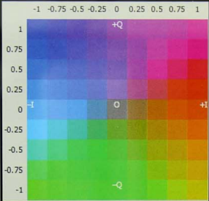 نظام YIQ: يستخدم نظام ( YIQ ) في البث التليفزيوني ( في نظام NTSC ) و في الشاشة أو التليفزيون الملـون تظهـر القيم الثلاث كما بالشكل