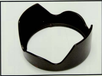 قلنسوة العدسة Lens Hood: يفضل المصورون المحترفون استخدامها في التصوير الخارجي التقليل وإزالـة وهـج العدسة كما أن فائدتها أيضا في التصوير الداخلي كبيرة لحمايتها للعدسة من أي من الأخطار