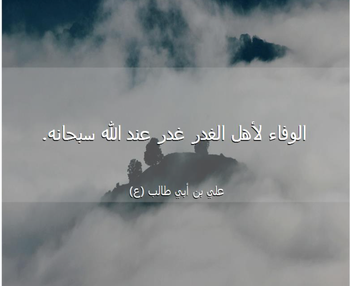 قَالَ الامام علي (عليه السلام): الْوَفَاءُ لِأَهْلِ الْغَدْرِ غَدْرٌ عِنْدَ اللَّهِ وَالْغَدْرُ بِأَهْلِ الْغَدْرِ وَفَاءٌ عِنْدَ اللَّهِ.