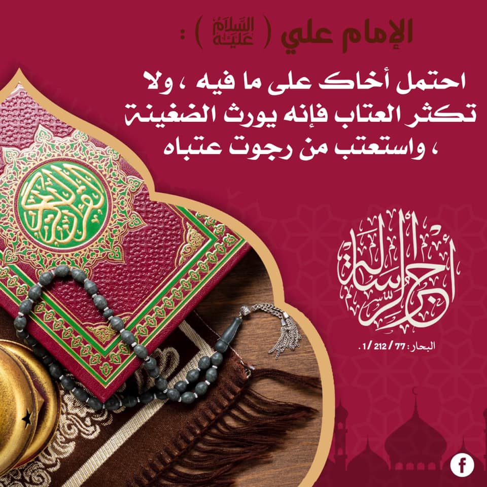 احتمل أخاك على ما فيه ، ولاتكثر العتاب فإنه يورث الضغينة ، واستعتب من رجوت عتباه .///