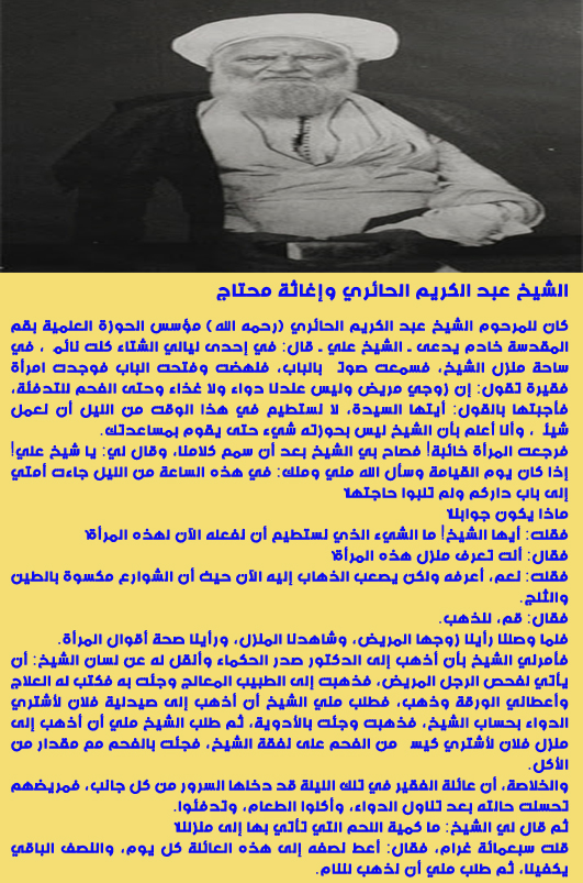 من أخلاق علمائنا // الشيخ عبد الكريم الحائري وإغاثة محتاج ::
