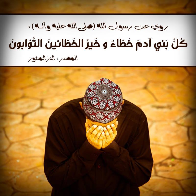 روي عن رسول الله ( صلى الله عليه و آله ) أنهُ قَالَ : كُلُّ بَني آدمَ خَطّاءٌ، و خَيرُ الخَطّائينَ التَّوّابونَ .