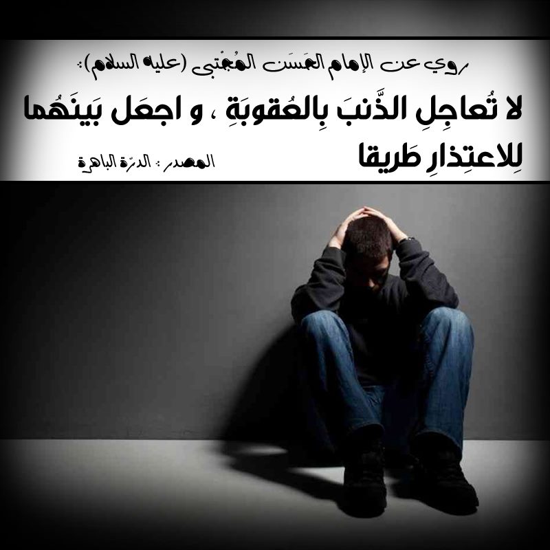رُوِيَ عن الإمام الحَسَن المُجْتبى ( عليه السلام ) أنهُ قَالَ : لا تُعاجِلِ الذَّنبَ بِالعُقوبَةِ ، و اجعَل بَينَهُما لِلاعتِذارِ طَريقا .