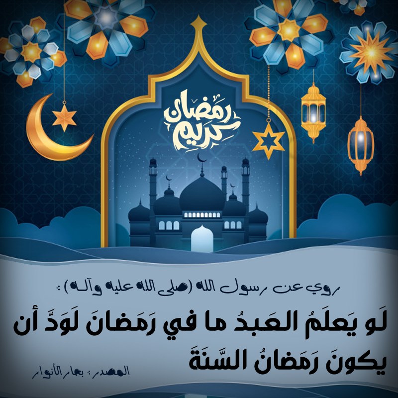 روي عن رسول الله ( صلى الله عليه و آله ) أنهُ قَالَ : لَو يَعلَمُ العَبدُ ما في رَمَضانَ لَوَدَّ أن يكونَ رَمَضانُ السَّنَةَ .