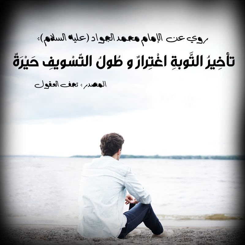 رُوِيَ عن الإمام محمد بن علي الجواد ( عليه السلام ) أنهُ قَالَ : تأخِيرُ التَّوبةِ اغْتِرارٌ ، و طُولُ التّسْويفِ حَيْرَةٌ .