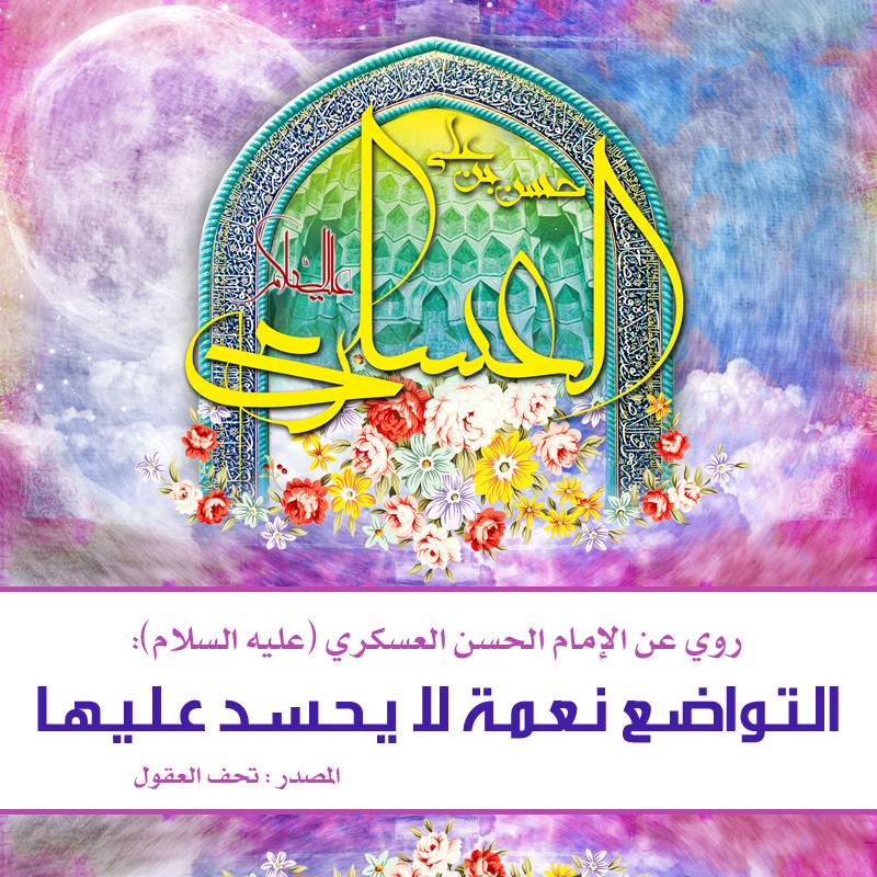 رُوِيَ عن الإمام الحسن بن علي العسكري ( عليه السلام ) أنهُ قَالَ : التَّواضُعُ نِعمَةٌ لا يُحسَدُ علَيها .