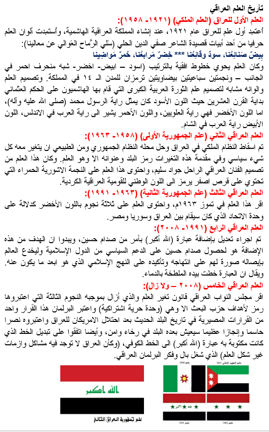 واليك عزيزي القارئ مراحل واشكال العلم العراقي حتى يومنا هذا.